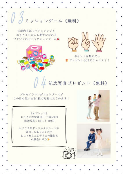 ※お子さま衣裳貸出し:1着500円